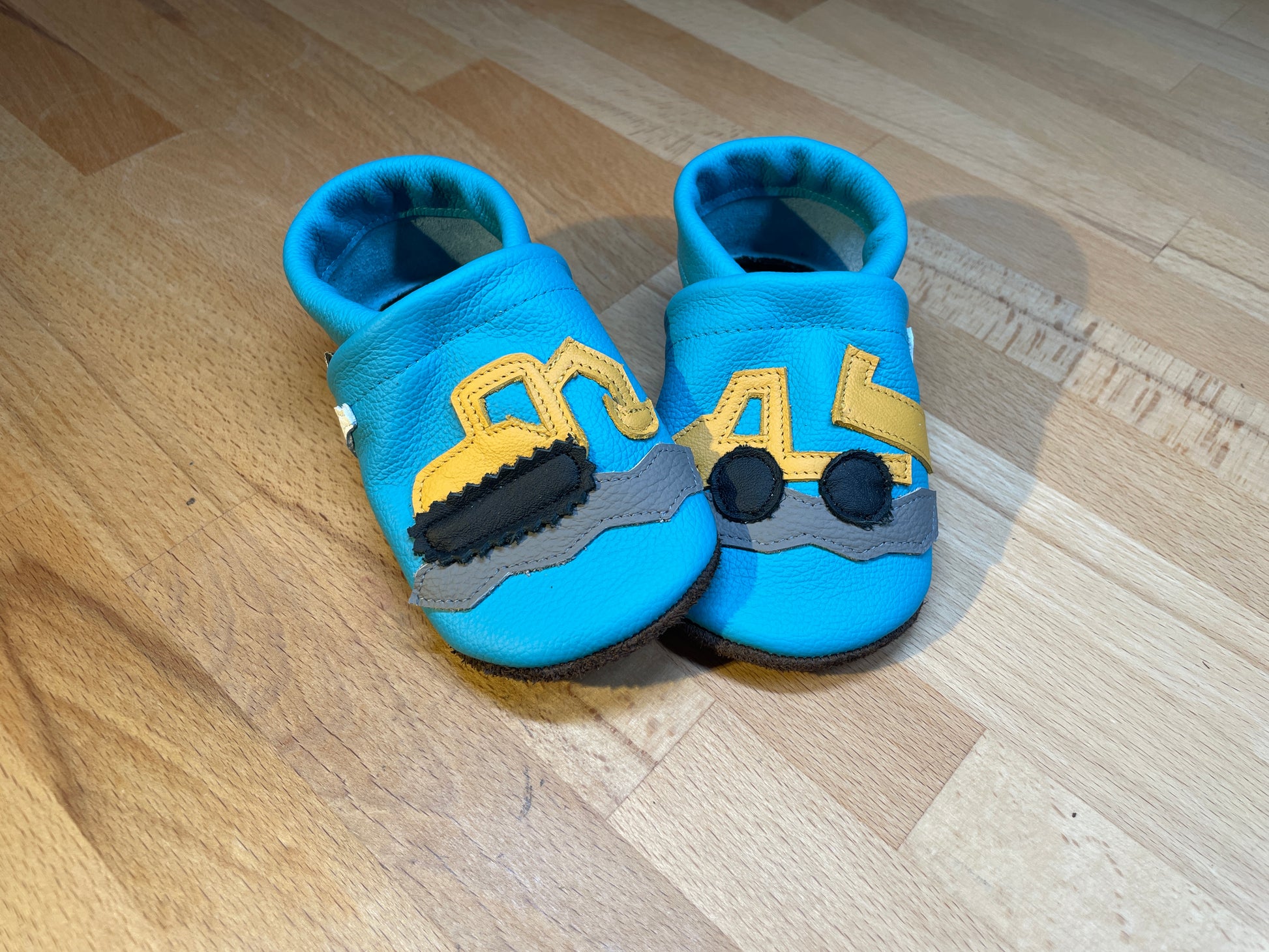 Eine Baustelle immer dabei....auf türkisfarbenen Lederpuschen.
