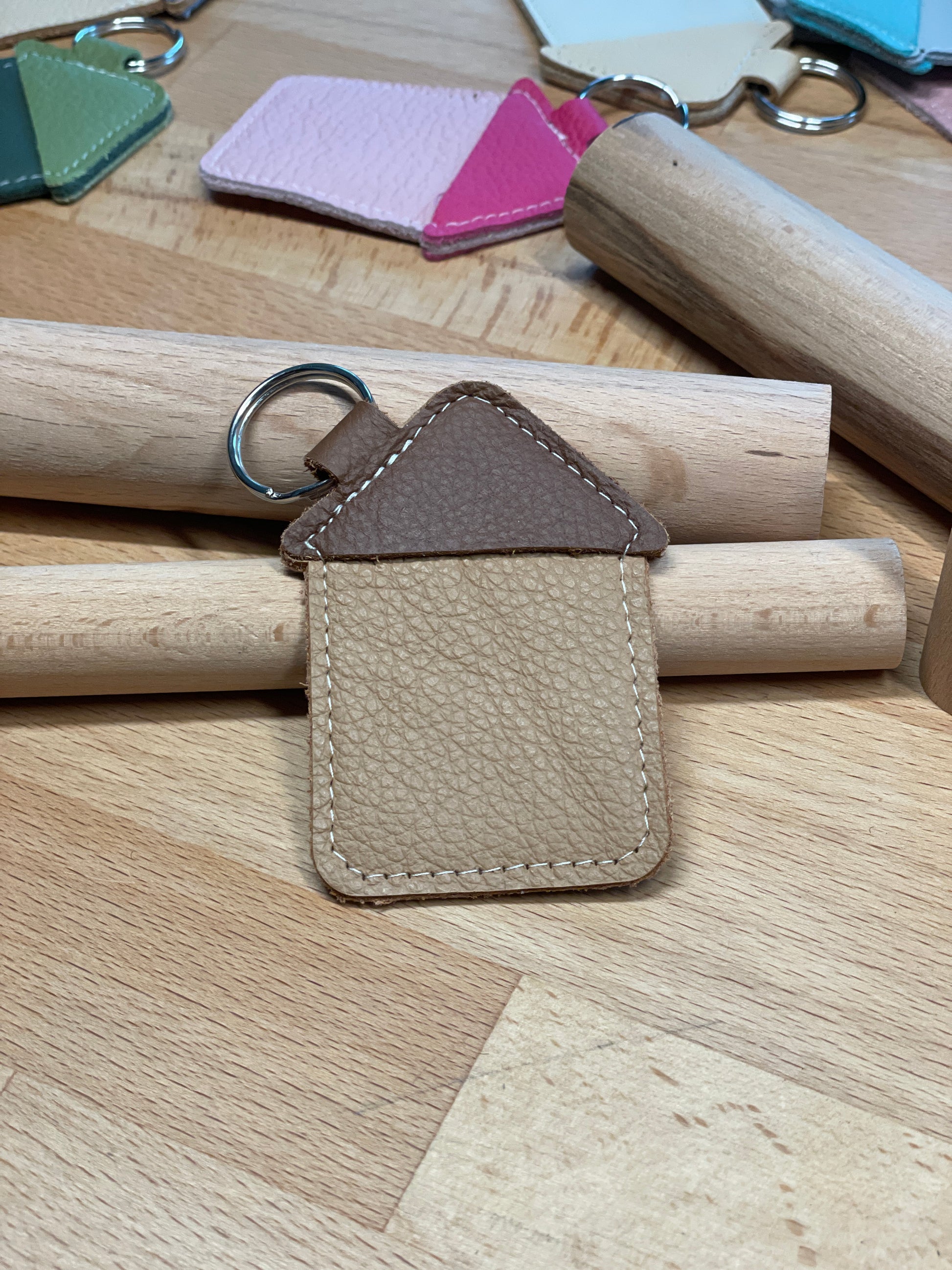 Schlüsselanhänger "Haus" camelfarben-rehbraun -versandbereit-