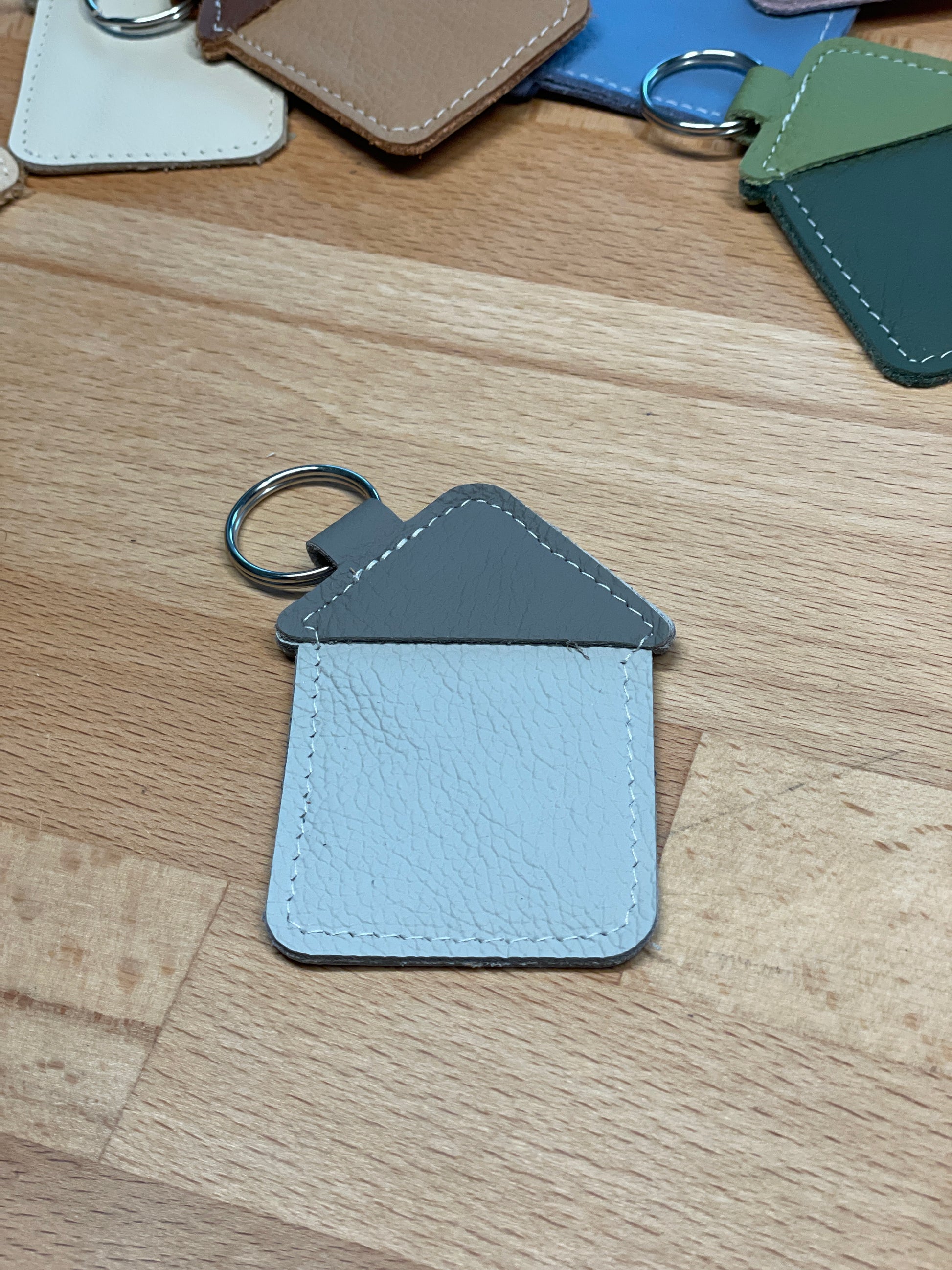 Schlüsselanhänger "Haus" hellgrau-dunkelgrau -versandbereit-