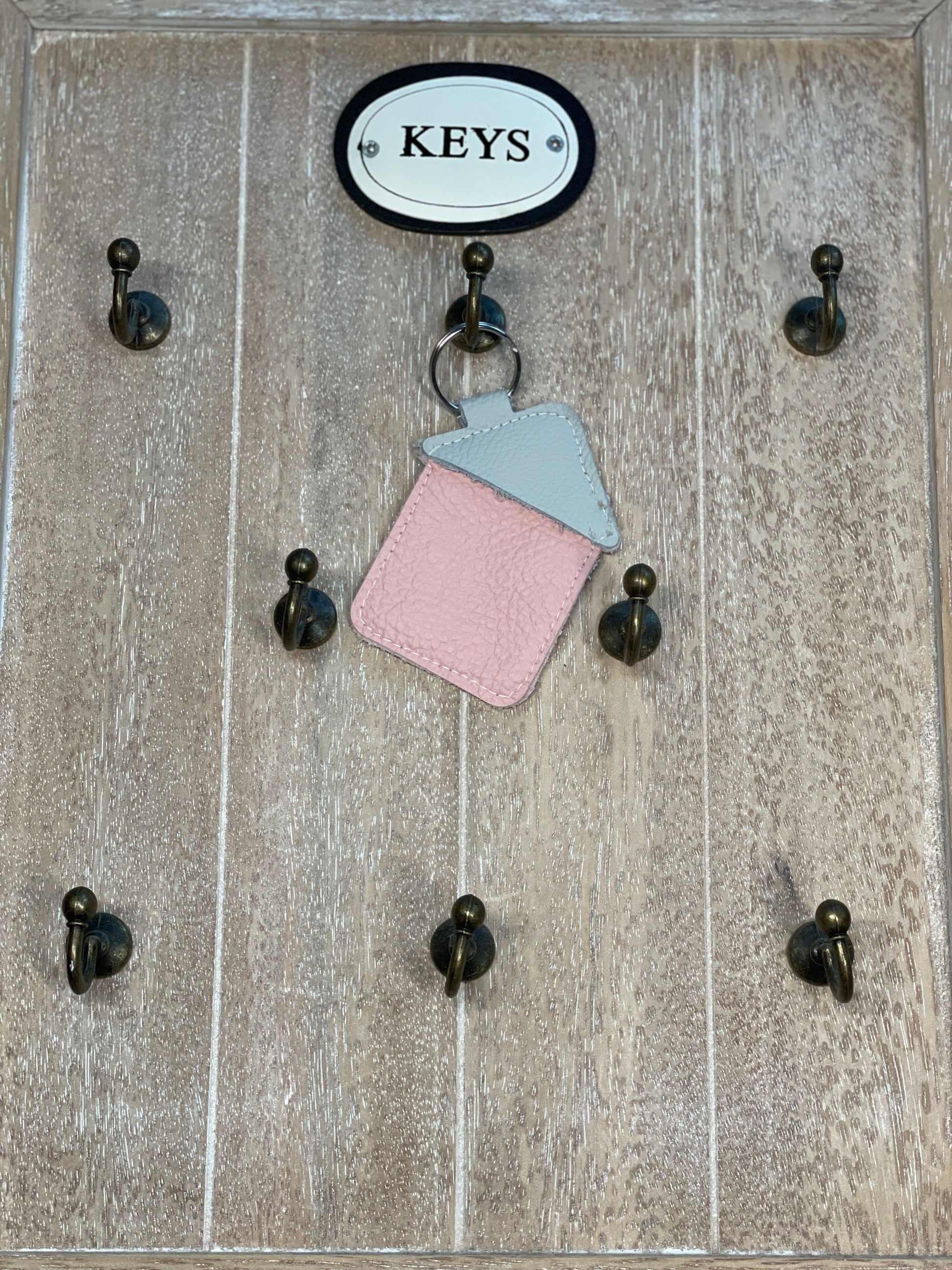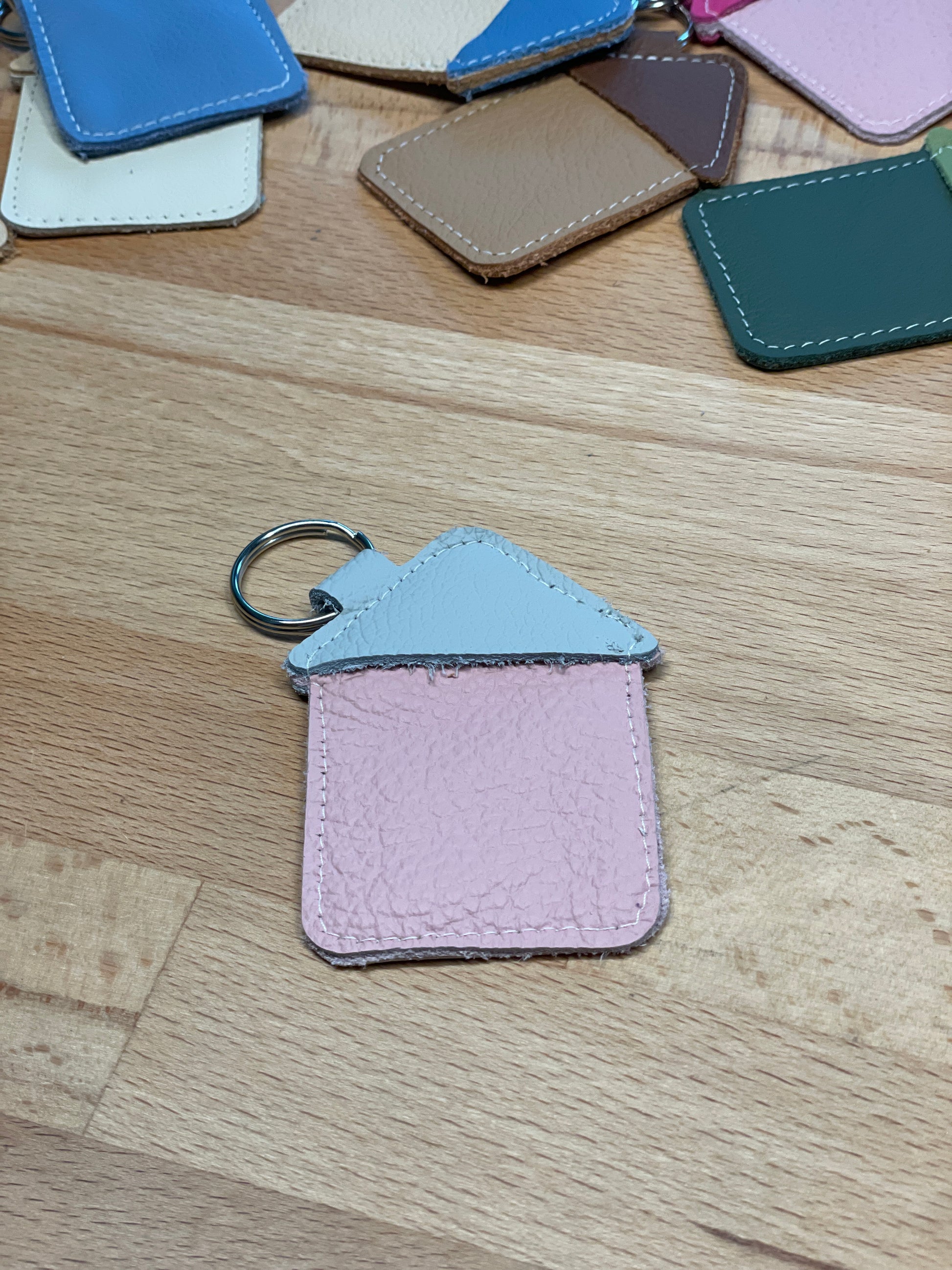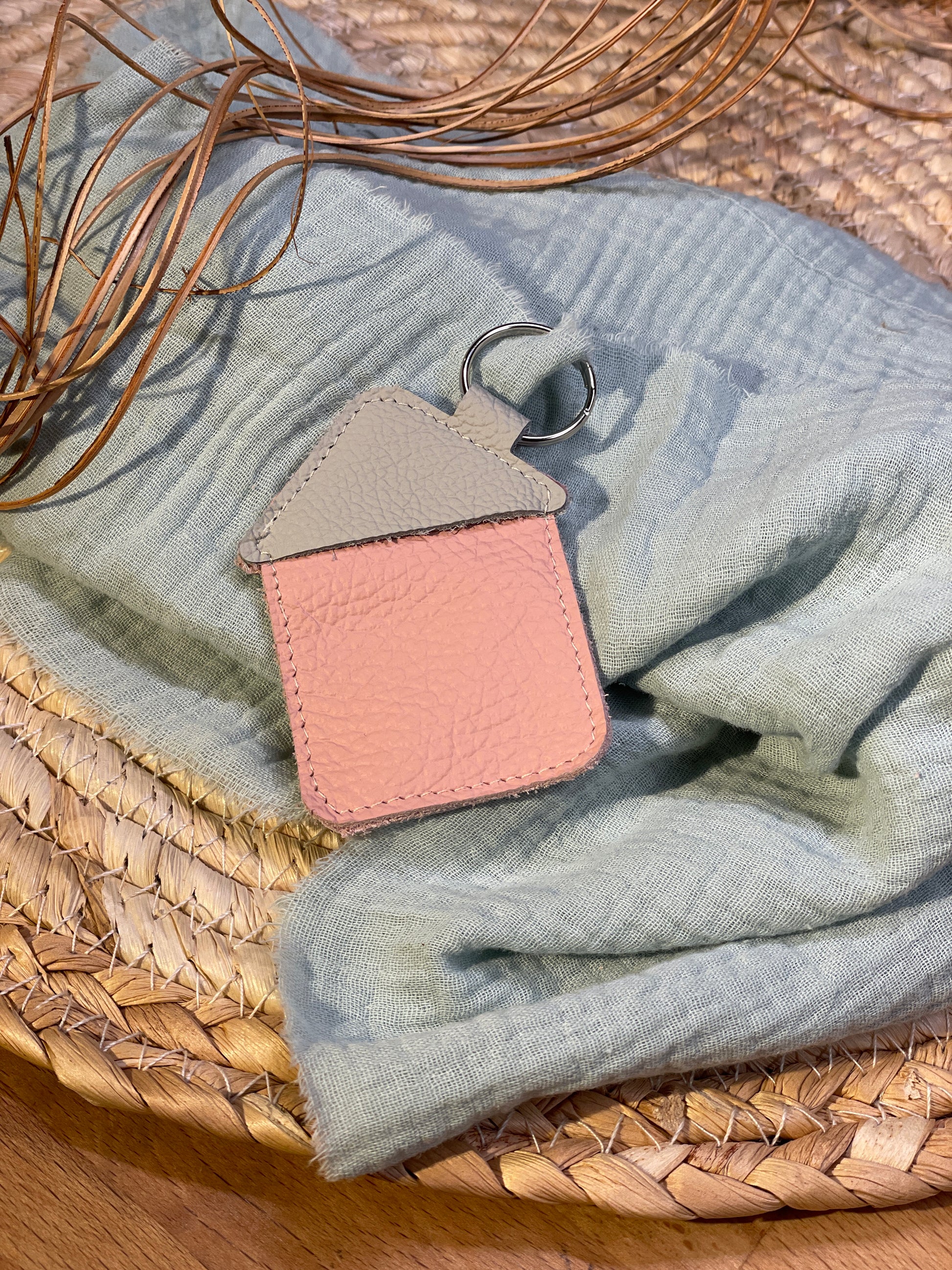 Schlüsselanhänger "Haus" rosa-hellgrau -versandbereit-